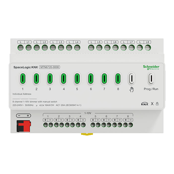 施耐德8通道KNX多功能开关执行器MTN6700-0108照明窗帘风机盘管驱动器